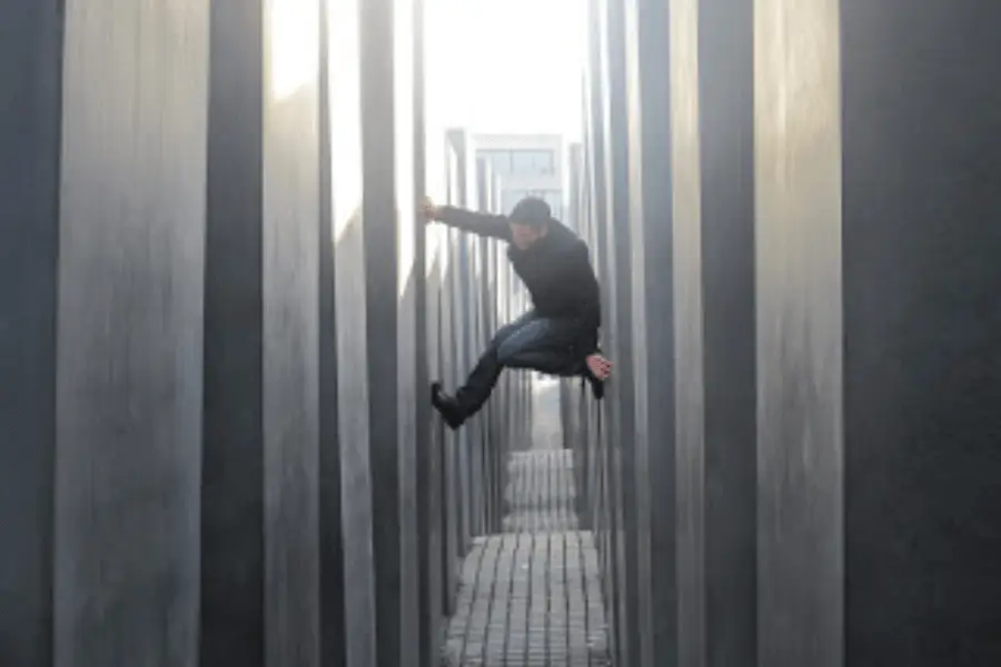 ביממה שקדמה לפתיחת תערוכת "העברים החדשים", הופנו זרקורי העיר ברלין אל אנדרטת הזיכרון ליהודים שנרצחו בידי הנאצים. ראש עיריית ברלין, קלאוס וורייט, פנה אל תושבי העיר וביקש כי יתייחסו ברצינות ובכבוד הראוי לאנדרטה החדשה שנחנכה רק עשרה ימים קודם לכן. פנייתו נבעה מתמונות שהתפרסמו באותו היום בעיתונים, ובהם נראו ילדים המקפצים ממצבה למצבה. נראה כי הפעילות הדומיננטית ביותר שהתקיימה בין עמודי האנדרטה התמירים האלו היתה משחק מחבואים.